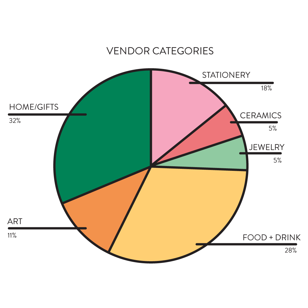 Featured vendors showcase a variety of their works, skills and talents in categories such as home/gift, food and drinks, fine art, stationery, ceramics, and jewelry.